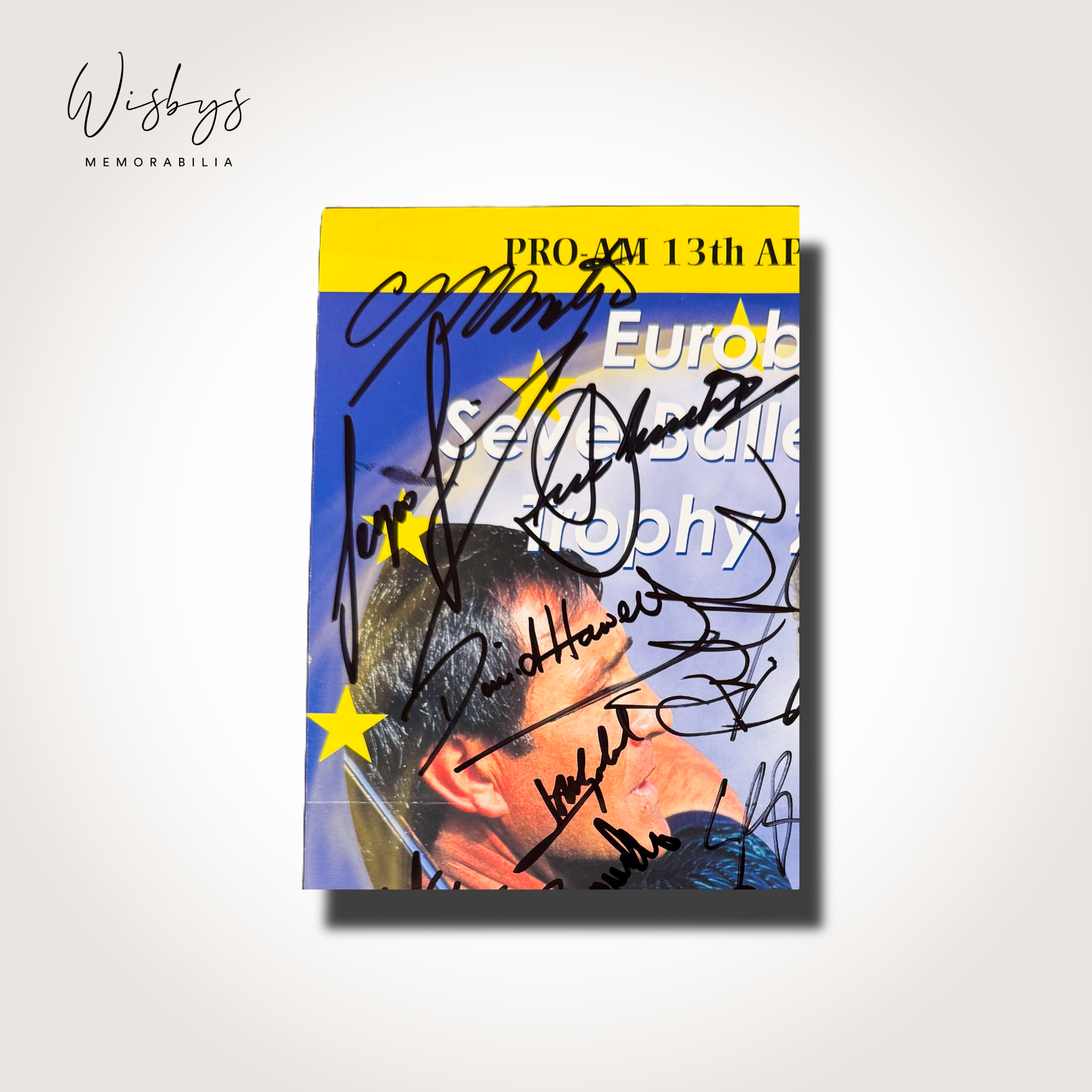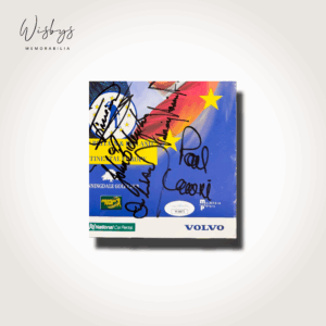 Featuring a staggering ensemble of 20 signatures, including such luminaries as Seve Ballesteros, Ian Woosnam, Padraig Harrington, and Bernhard Langer, this programme is a collector’s gem. Each autograph stands proud against the glossy backdrop, capturing a moment history connoisseurs covet. Furnished with a Certificate of Authenticity, this artefact bears both the hand and spirit of legends. With pristine condition and care taken in preservation, the programme’s cover showcases Eurobet’s sponsorship, hinting at the professional prowess within. It’s a piece that elevates any collection, promising to inspire and delight for generations to come.