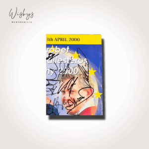 Step into the world of golf legends with this rare signed poster from the 2000 Eurobet Seve Ballesteros Trophy Pro Am. An embodiment of camaraderie and competition, this event celebrated the European golfing spirit and honours the legacy of the indomitable Seve Ballesteros. Held at Sunningdale Golf Club, this inaugural tournament was more than just a game; it was a testament to sportsmanship and a gathering of Europe’s finest drivers, chip shots, and putts. For seasoned fans and new admirers alike, the poster encapsulates a golden era of golf, drawing together titans who left an indelible mark on the sport.