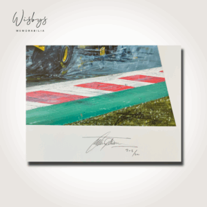 Expertly crafted with precision, each print is personally autographed by Damon Hill, ensuring its authenticity and making it a cherished keepsake for any motorsport aficionado. The artwork’s vibrant colours and dynamic composition encapsulate the thrill of the race, while the included Certificate of Authenticity further reinforces its limited-edition status. With its distinguished signature placement and impeccable presentation, this artist print is bound to be the centrepiece of any collection and a talking point for all who appreciate the glory days of F1.