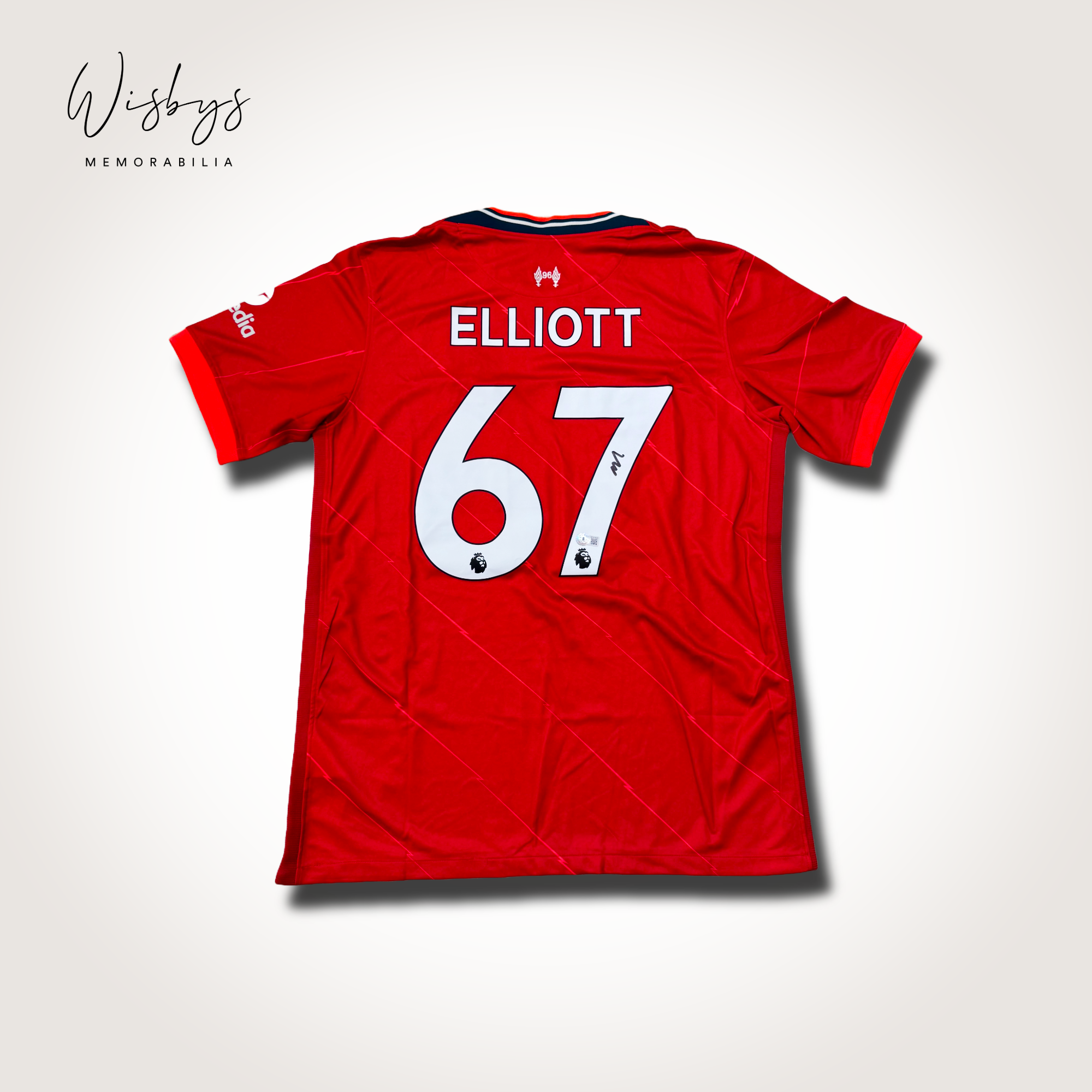 Embrace the essence of Liverpool FC with this authentic replica jersey, hand-signed by rising star Harvey Elliott. A prodigious talent within the Anfield ranks, Elliott has captured the hearts of fans with his dynamic performances and fearless approach on the pitch. Sporting this jersey, you’ll be reminded of Elliott’s pivotal role in Liverpool’s squad, inspiring moments of magic during the thrilling Premier League fixtures. This jersey not only represents your support for the team but also serves as a homage to a footballer destined to carve out his name in Liverpool’s illustrious history.
