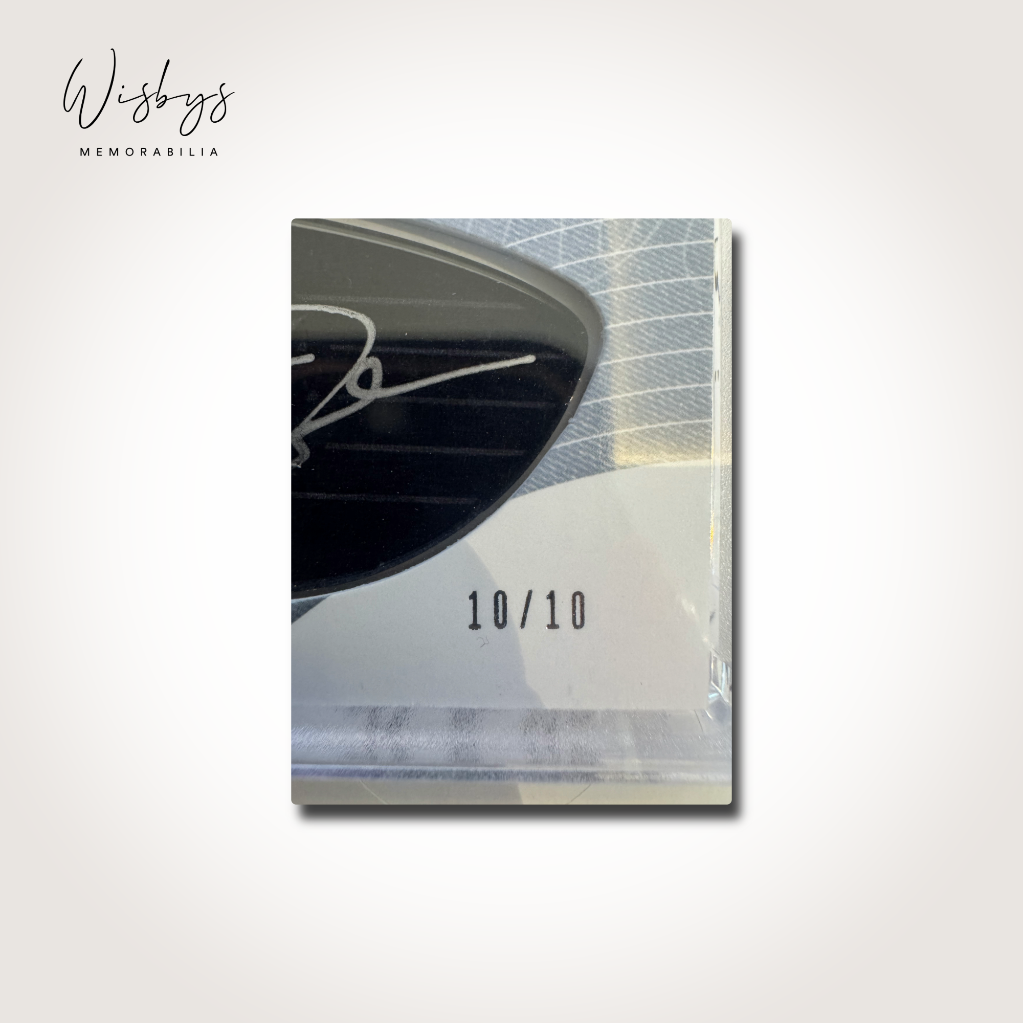 This card is hand-numbered 10 of just 10 produced, making it the final piece in a short print run. Protected in a secure display case, it’s a standout item for both sports card collectors and fans of MJ’s enduring impact beyond the basketball court.